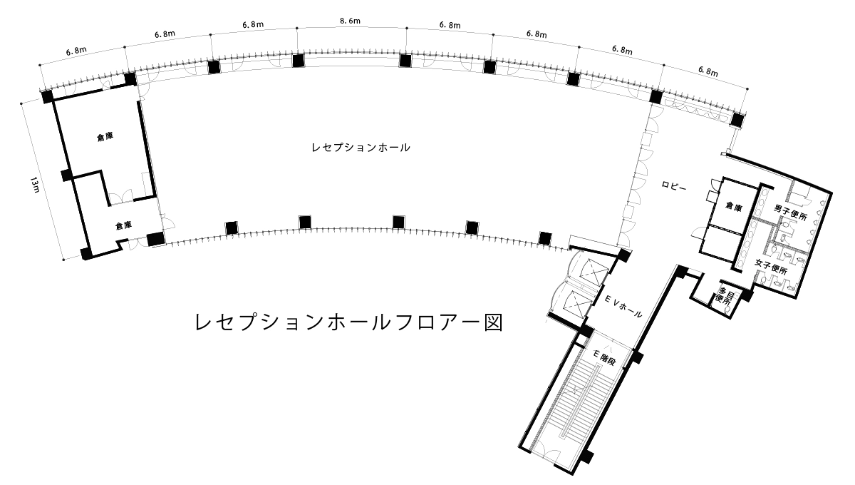 移動式舞台、ピアノ、音響装置などを備えており、レセプション、立食パーティー、ディナーコンサートなどに幅広くご利用いただけます。